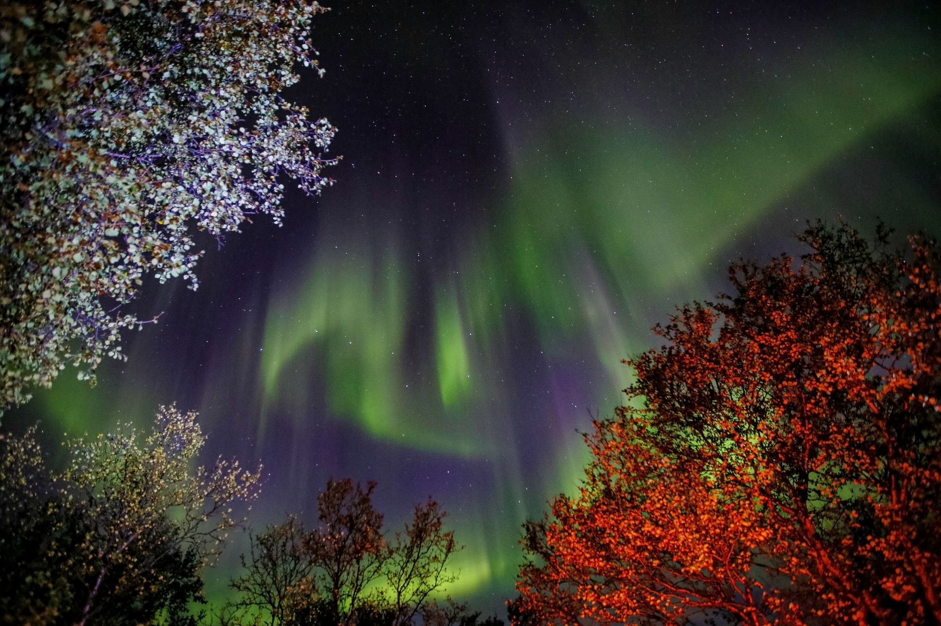 - Северное сияние в окрестностях реки Ура в Мурманской области