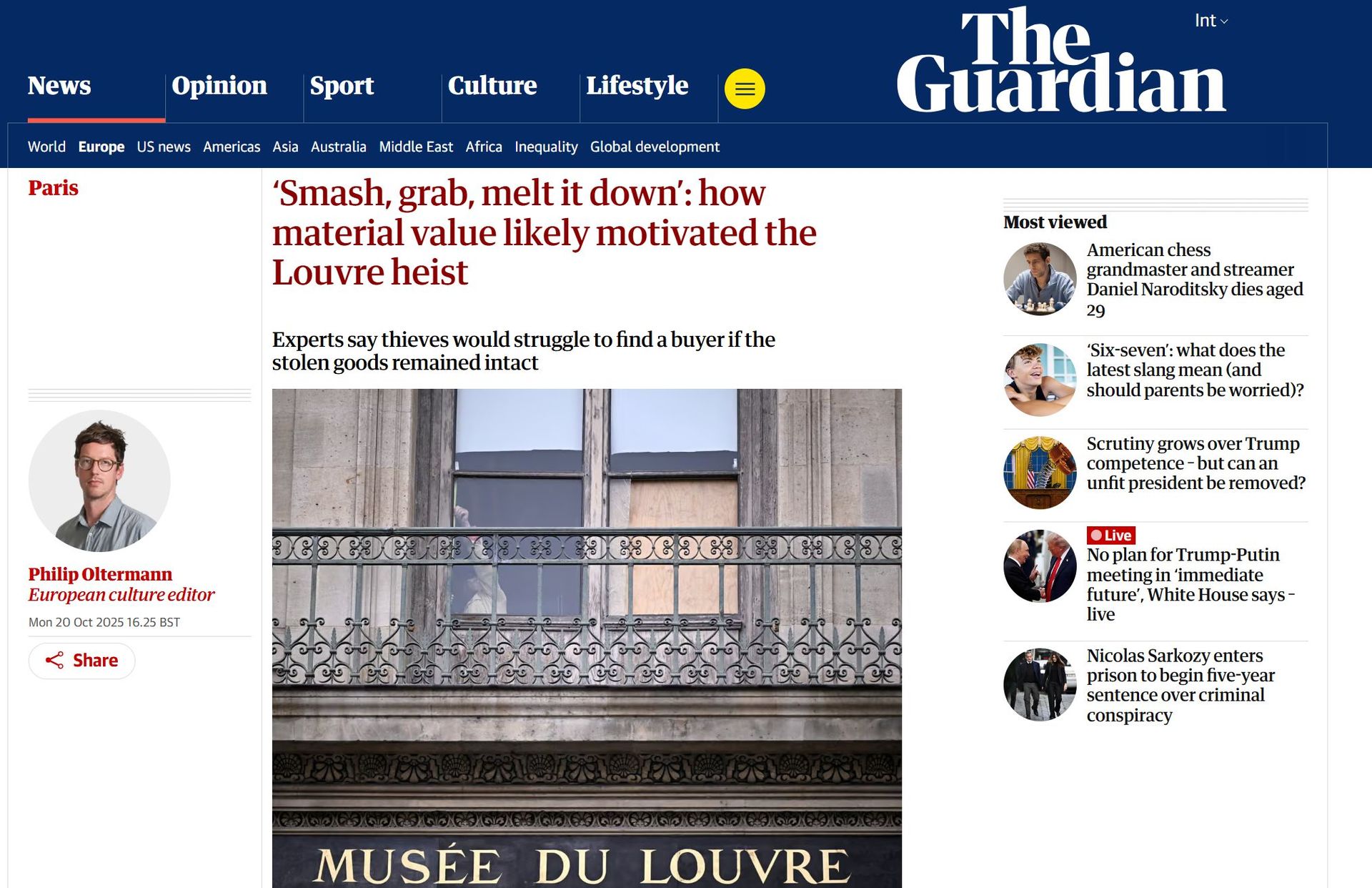 «Взломать самый посещаемый музей мира среди бела дня, украсть восемь бесценных наполеоновских драгоценностей и раствориться в парижском потоке машин на скромных скутерах — это похоже на самое дерзкое преступление, совершённое ради международной известности и последующих адаптаций в голливудских фильмах, — рассуждает издание. — Однако эксперты, следящие за тенденциями международной преступности в сфере искусства, рассматривают ограбление Лувра, совершённое в воскресенье утром, как нечто более прозаическое — очередную кражу с витрин, связанную скорее со стоимостью драгоценных камней и металлов, чем со значимостью самих предметов».